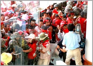 By the end of 2008 the Democrat Party was the ruling party as the majority party in the government, so the Red Shirts wasn’t going to have any of this, they once again took to the street
